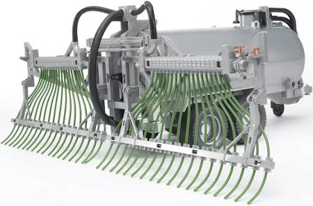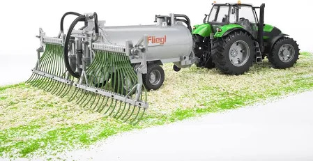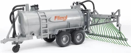 The barrel trailer with spread tubes from Fliegl can be filled with water and closed with a lid. The barrel trailer can be emptied again through the discharge valve. The spread tubes can be folded in during drive mode. The barrel trailer with spread tubes is suitable for all tractors of the Profi series (not included).