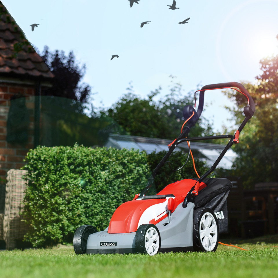 The Cobra GTRM43 electric mulching lawnmower is lightweight and features a 1800w motor. The easy to use central height adjuster and integrated rear roller give your lawn the perfect striped finish.