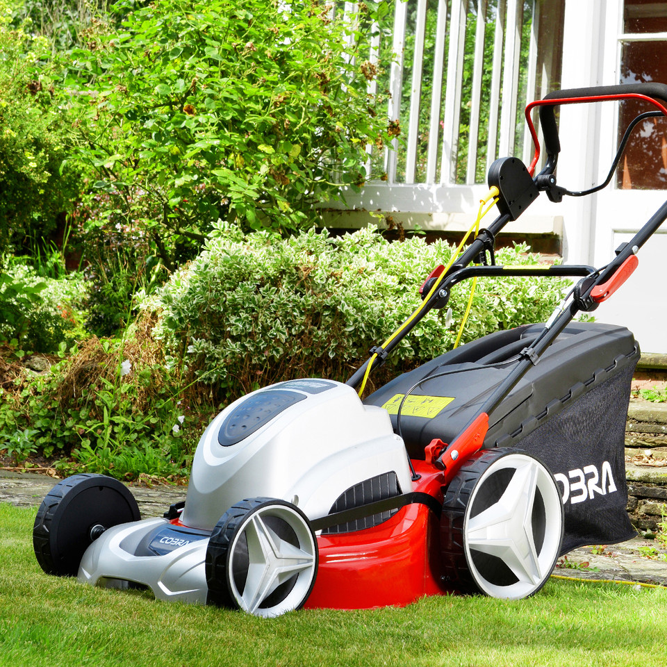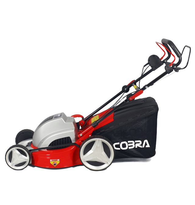 The Cobra MX46SPE 18″ electric 3-in-1 lawnmower is powered by a 1800w motor. The MX46SPE is self propelled and can either mulch, side discharge or collect grass.