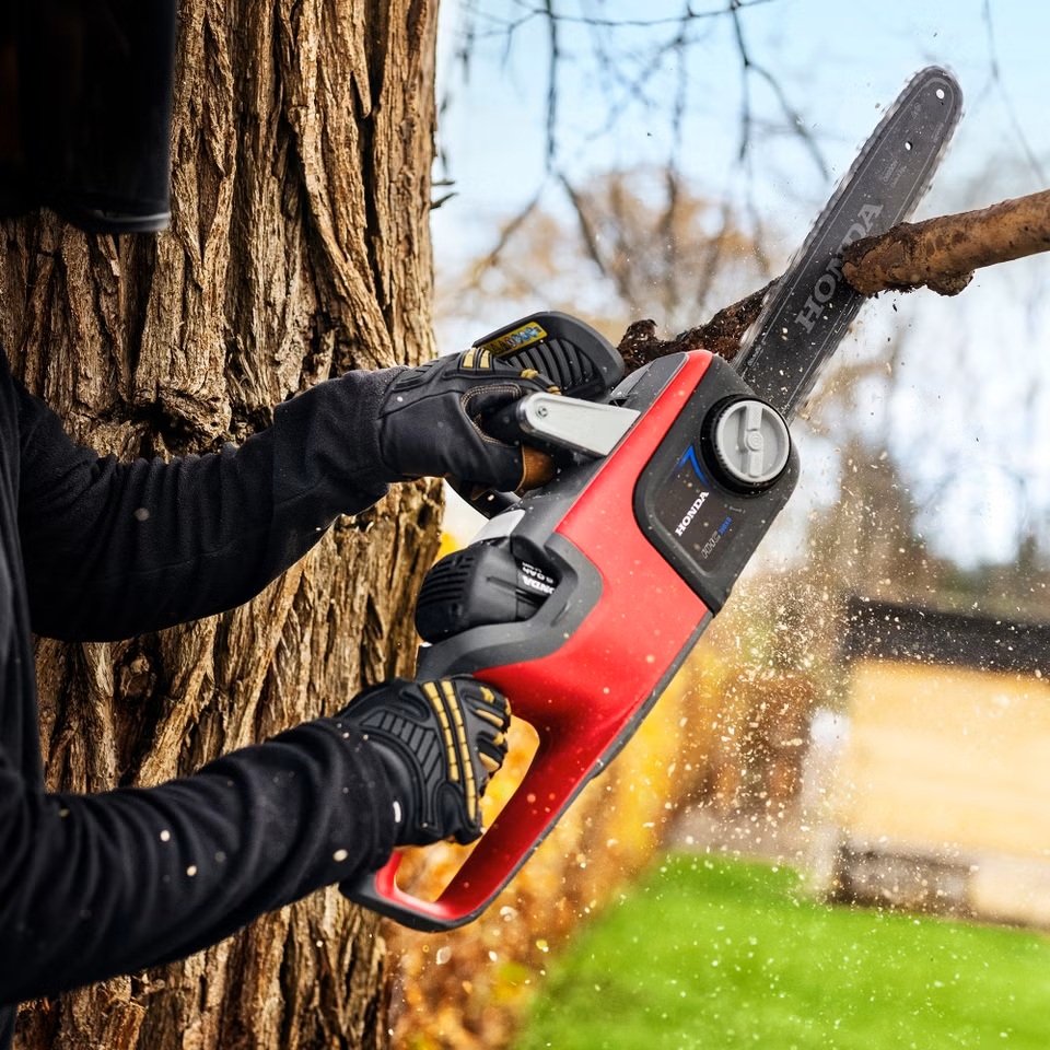 The all-new Honda Cordless Chainsaw has an ergonomic design making it easy to use, providing a greater balance and a 1.6KW output for powerful performance. You can efficiently cut firewood, slice through both hardwood and softwood, trim medium-sized branches, and even fell small trees, all while enjoying the benefits of low noise and high-quality performance. With an ideal power to weight ratio, our chainsaw is great for home users and makes it easier to cut through wood.