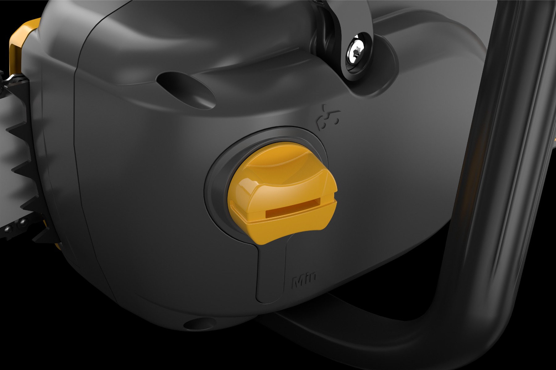 Chain tensioning is made easy thanks to the integrated nut on the side of the chain cover. Use the softkey selector pad to switch between chain speeds: choose 16 m/s to save on battery energy or 20 m/s for faster, resistance-free cutting power. And to see essential information such as the speed, battery level and when the brake is engaged, a quick glance at the LEDs on the control panel will clearly display what you need to know – even in strong sunlight. You can also check the level of oil that lubricates the chain by simply looking at the transparent tank window.